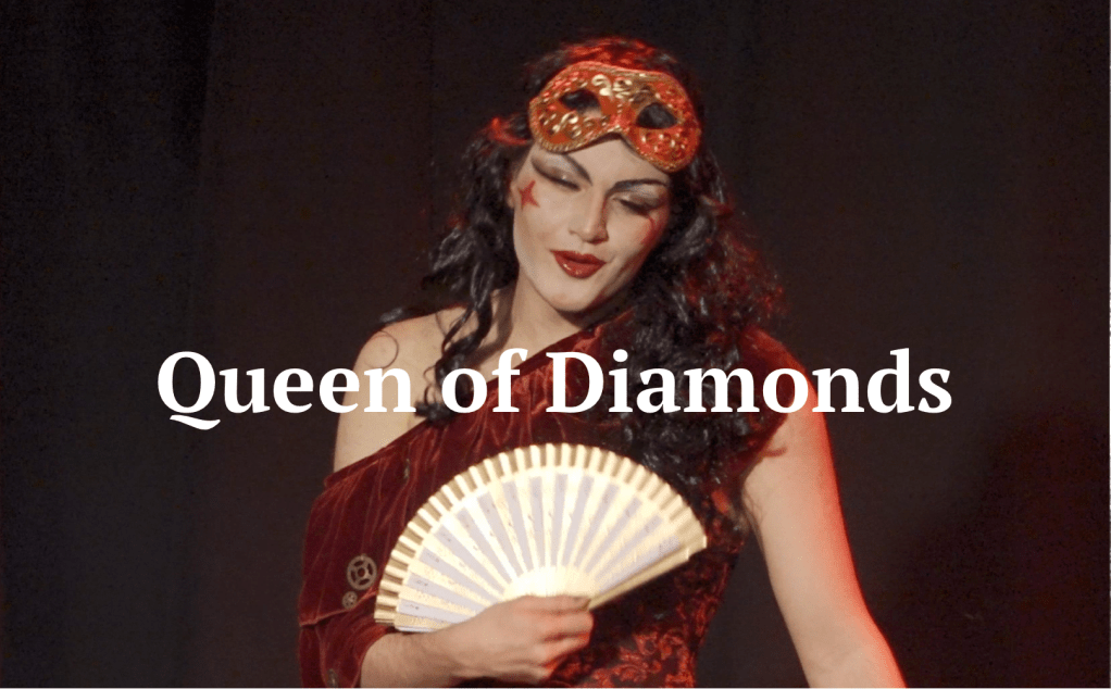 Queen of Diamonds is a tragi-comic drag exploration of queer history from 1200 AD to today. Inspired by Virginia Woolf’s Orlando, the 20 minute show blends historical fiction and fantasy to take audiences on a wolf-whistle stop tour of seven transsexual centuries.
